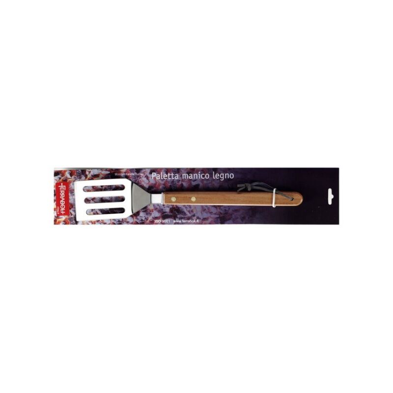 Paletta in acciaio INOX con manico in legno per barbecue;