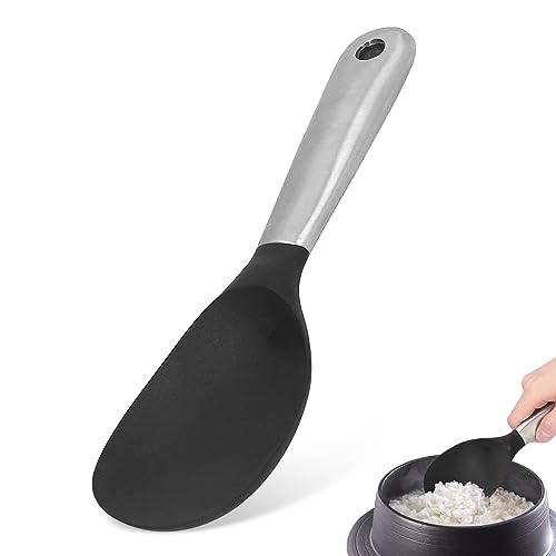 Paletta Riso, Rice Paddle, Cucchiaio Silicone Cucina, Cucchiaio da Cucina per Risotto, Cucchiaio da Servizio in Padella Antiaderente con Manico in Acciaio Inox per Mescolare, Servire Zuppe e Altro