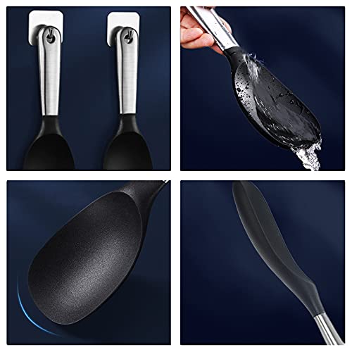 【Materiale】: questo cucchiaio di riso è fatto di acciaio 304 e materiale di resina di alta qualità, non facile da arrugginire sicuro, non tossico e inodore, può essere in contatto diretto con il cibo.