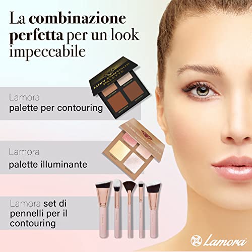 ✔ PALETTE ILLUMINANTE VISO - La Lamora Glam Glow Highlighter Makeup Palette è ispirata al lato femminile e gentile della donna - Creata con ingredienti di altissima qualità e la più aggiornata formula ultra-micronizzata e lussuosamente pigmentata illuminante. 4 colori illuminante viso in polvere make up ricchi di pigmenti, una potente capacità di resistenza e sfumabilità.