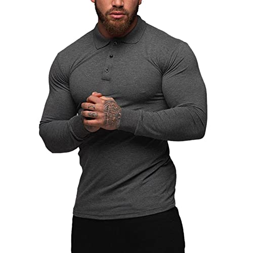 Palglg Uomo Manica Lunga Casual Magliette Camicie Tee con Polo Elastico Cotone Grigio Scuro L