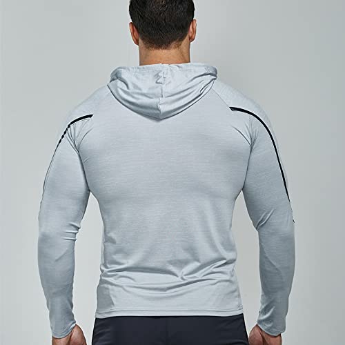 Palglg Uomo Manica Lunga Compressione Maglie da Corsa Gli Sport Felpe con Cappuccio Dri Fit Fitness Hoodies 21801 Grigio S