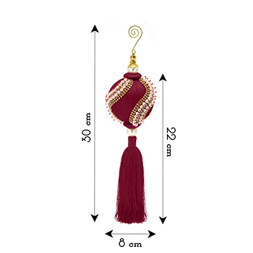 Palla Albero di Natale Shabby Chic con Perle Strass e Nappa Colore Borgogna Diametro 8 cm