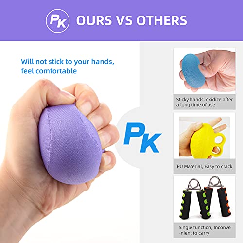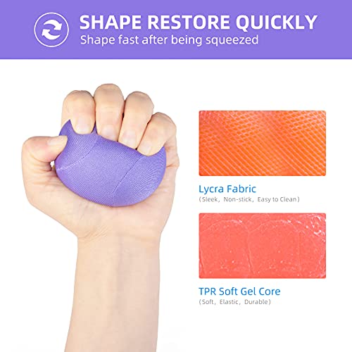 [Qualità premium extra durevole]: senza lattice e senza BPA, ogni pallina dal design ergonomico mantiene la sua forma grazie all'uso di materiali di prima qualità, tra cui un nucleo in gel TPR resistente allo strappo e un tessuto Lycra liscio che è comodo al tatto.