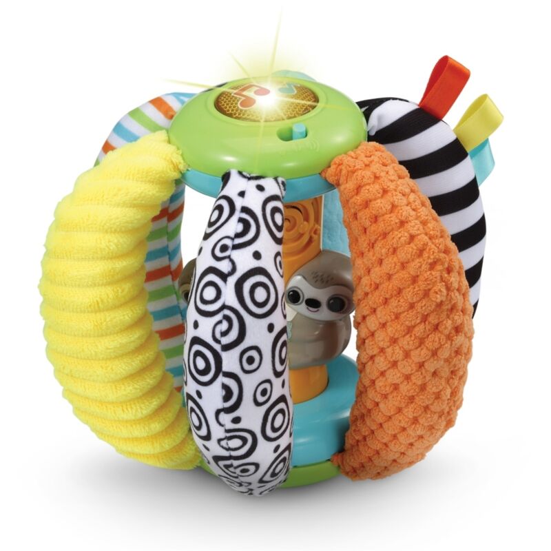 Palla coccolosa VTech Baby Peekaboo Fai rotolare la palla allegramente avanti e indietro, ancora e ancora! Premi il tasto musicale lampeggiante per ascoltare frasi allegre, suoni divertenti, canzoni cantate e melodie. Le diverse strutture del tessuto stimolano il senso del tatto. Scuoti e fai rotolare la palla per attivare il sensore di movimento e ascoltare suoni divertenti. Ruota la mamma e il piccolo bradipo per un divertimento ancora maggiore. 15 melodie e 4 canzoni cantate.CaratteristicheColore del prodotto: MulticolorMateriale: PlasticaGenere suggerito: Ragazzo/ragazzaEtà consigliata (min): 0,5 anniEtà consigliata (max): 3 anniSuono: SìLingue supportate: OlandeseAssemblaggio richiesto: NoLavabile: NoPaese di origine: CinaMusica Riproduzione: SìEnergiaTipo di alimentazione: BatteriaTipo di batteria: AAARicaricabile: NoNumero di batterie/batterie supportate: 2Capacità di apprendimento e formazioneCapacità di apprendimento e formazione: Formazione sulle abilità motorie, Formazione