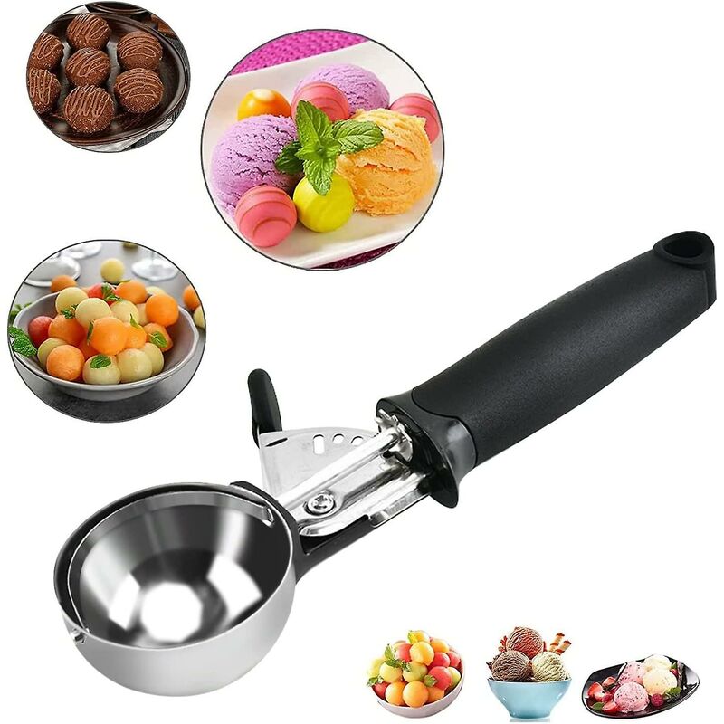 SPOONS PREMIUM GELATO: Realizzato in acciaio inossidabile per uso alimentare con manico in plastica di qualità, ecologico, sicuro, sano e durevole da usare. Sicuro per te e la tua famiglia. USO DELLA GAMMA LARGA: usa questo scoop per creare palline meravigliosamente arrotondate di gelato, sorbetto, meloni, polpette, purè di patate. Inoltre, può essere palline di biscotti, palline di muffin, palline di cupcake, palline di frutta, palline di sorbetto, palline di melone, polpette, ecc. PALLA DEL GHIACCIO DI RILASCIO FACILE: La parte superiore della paletta del gelato ha un dispositivo di cattura della palla per evitare che il gelato freddo si attacchi alla testa della paletta. Il design della leva a molla viene utilizzato al centro e l'impasto del gelato/biscotto può essere facilmente rilasciato schiacciando la maniglia e il gelato/impasto sferico nella bocca del cucchiaio può essere facilmente estratto.