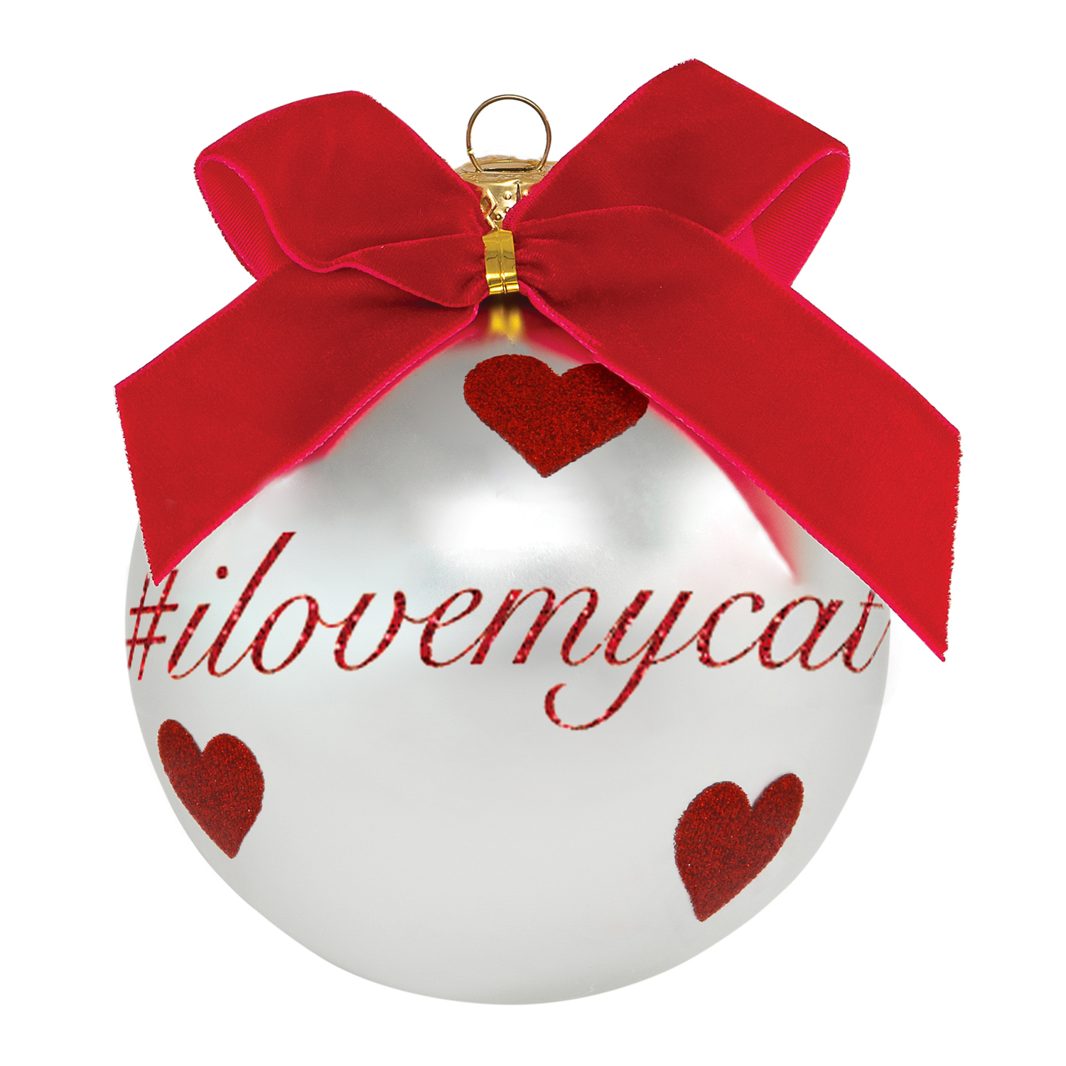 Pallina di Natale con scritta #ilovemycat 10 cm;