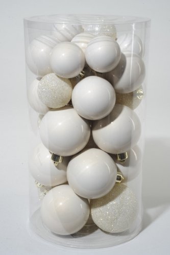 30 palline per albero di Natale, infrangibili, decorazioni natalizie, colore bianco lana, 340594