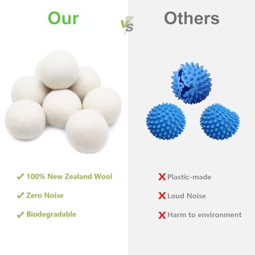 【Materiali di alta qualità】Le nostre palle di asciugatura della lana sono fatte di lana di alta qualità, sana e sicura, priva di sostanze nocive di plastica o chimiche, morbida e confortevole, durevole, adatto a vari tipi di pelle, particolarmente adatto per neonati, bambini e persone con pelle sensibile.