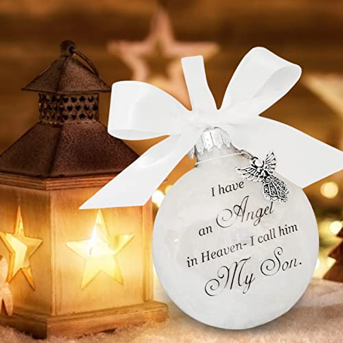 Palline Commemorative di Natale Ornamenti a Forma di Palla di Piuma I Have an Angel in Heaven con Piccolo Angelo Ornamento di Natale, Mamma papà Figlio Figlia Decorazione da Appendere