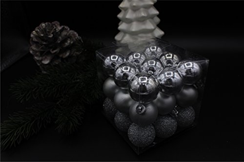 Palline decorative per l'albero di Natale, realizzate in plastica, con 50 ganci per appenderle 27x Stück Silber