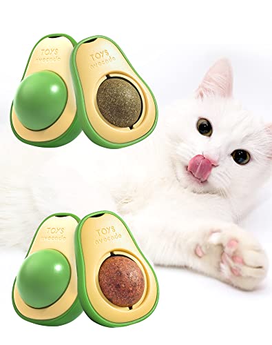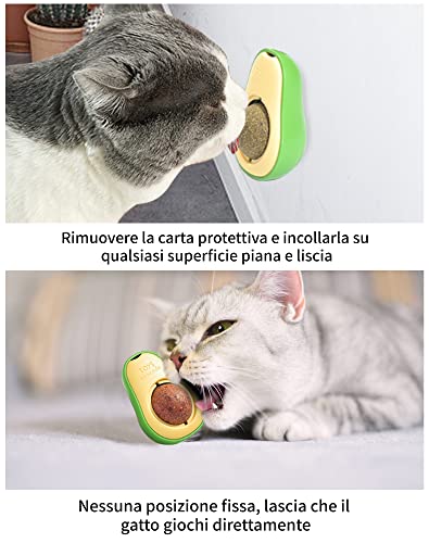 2Pcs Palline di Erba Gatta Palla da Parete di Erba Gatta Girevole Catnip Ball Avocado Rotante Giocattolo Interattivo per Eliminare i Boli di Pelo, Pulizia Denti, per Gatti di Età Superiore ai 6 Mesi