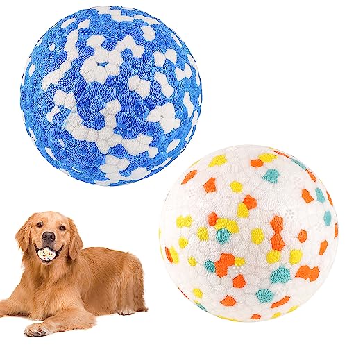 2 palline per cani in gomma, indistruttibili, altamente estensibili, durevoli, solide e interattive, resistenti ai denti, giocattolo acquatico per cani (blu + bianco)