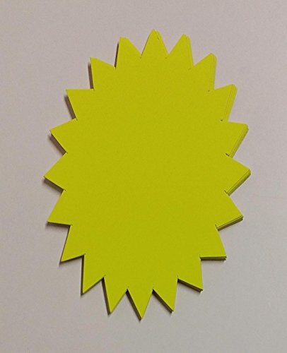 200 palline - stelle - Etichette per prezzi in cartone neon giallo fluo, 8,0 x 11,3 cm, 380 g/mq, simboli pubblicitari per la vendita di spazi.