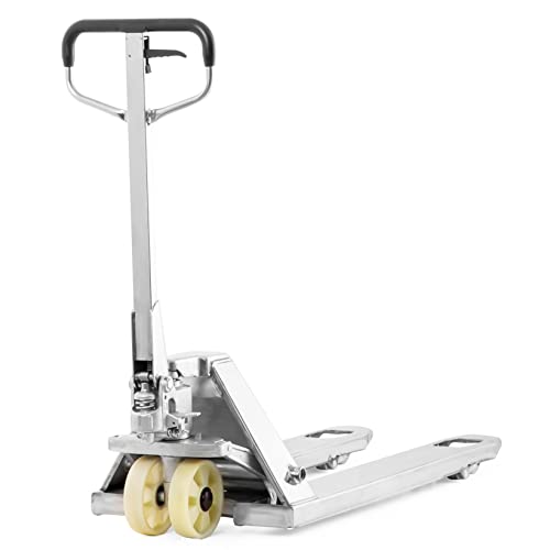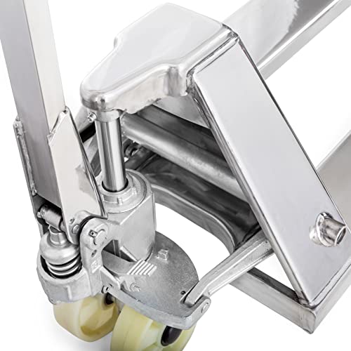 ACCIAIO INOSSIDABILE - Grazie al telaio in acciaio inossidabile e ai pneumatici in nylon, il transpallet è perfettamente adatto allindustria alimentare o chimica