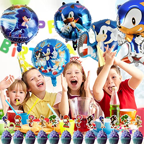Palloncini Alluminio Sonic con Cake Topper Palloncini, Palloncini per Feste per Bambini, Palloncini Foil Compleanno con Decorazione Torta Bambina, Addobbi Compleanno Set per Bambini Ragazze Ragazzi.