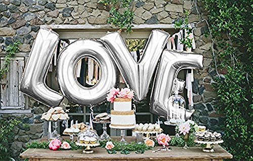 Set di palloncini d'amore, oro da 40 pollici adesivo palloncino per il matrimonio romantico, doccia nuziale, anniversario e decorazione del partito di fidanzamento (argento)
