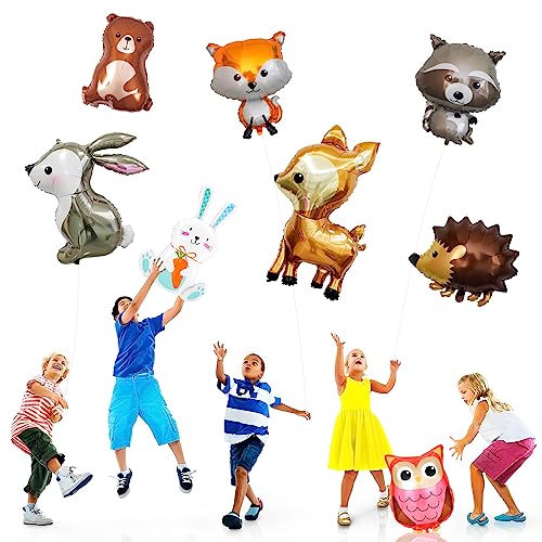 Palloncini ad elio animali della foresta, pallone in foil 8 pezzi compleanno, animali della foresta decorazione di compleanno, testa animale pallone gigante, palloncini ad elio animali per bambini
