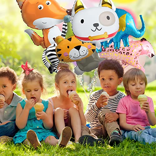Palloncini Animali, 9 Pezzi Palloncini Foil Animali per Compleanno/Regalo/Decorazione per Bambini, Palloncino a Elio Animale Utilizza 9 Forme di Animali e Palloncino Foil a Elio con Nastro/Paglia