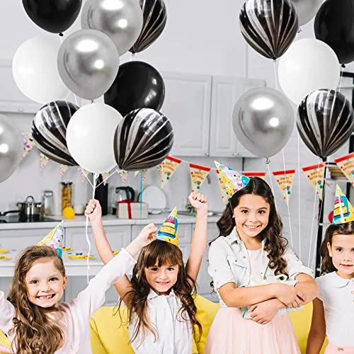 Palloncini neri e argento, confezione da 60 palloncini in marmo nero, bianco argento con coriandoli metallici, agata nera argento decorazione per feste di compleanno per matrimoni baby shower laurea