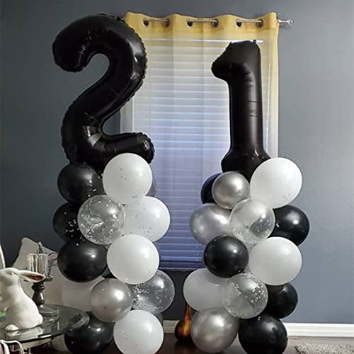 Palloncini Nero Argento,40 Pezzi Palloncini Oro Palloncini Nero Coriandoli Palloncino per Compleanno, Prima Comunione, Matrimonio, Battesimo