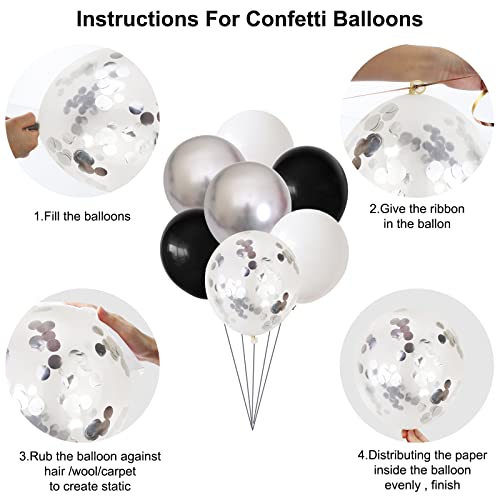 Palloncini di alta qualità: i palloncini per feste di compleanno in bianco e nero sono realizzati in lattice di alta qualità, spesso e durevole, atossici e innocui, il palloncino è forte e durevole e non facile da bruciare, supporta elio o aria. Tutti i palloncini possono essere riutilizzati. Please don't full the balloons too big,or it will broken for too much air.