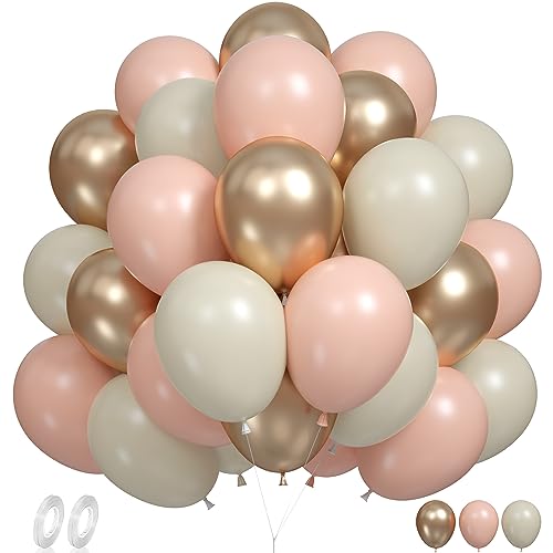 Palloncini beige, 60 pezzi, 12 pollici, colore sabbia, bianco, albicocca, palloncini, oro metallizzato, in lattice, per compleanno, baby shower, matrimoni, lauree, decorazioni per feste