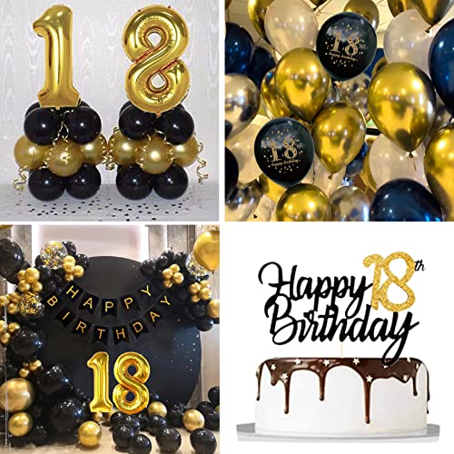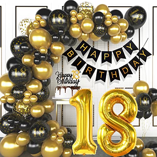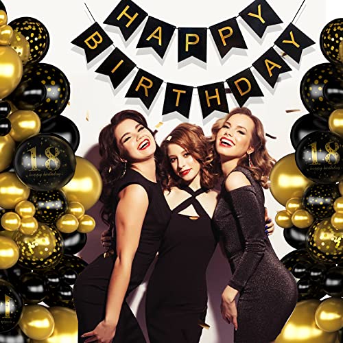 Palloncini 18 Anni Compleanno, Compleanno 18 anni Addobbi Oro Nero, Palloncini Compleanno 18 anni Ragazzo Ragazza,Decorazioni 18 anni Compleanno Ragazzo con Compleanno Banner