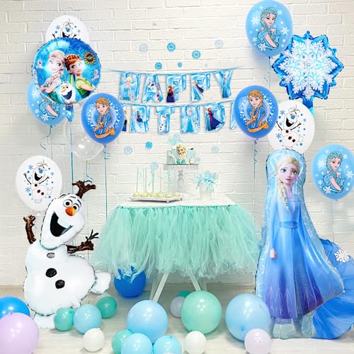 Set di decorazioni per il compleanno della bambina blu: 18 palloncini in lattice da 12 pollici, 2 palloncini in foil rotondi da 18 pollici, 2 palloncini in foil a fiocco di neve da 18 pollici, 1 palloncino in foil piccolo, 1 palloncino in foil grande, 1 palloncino in foil con numero blu "3", 1 striscione "Happy Birthday".