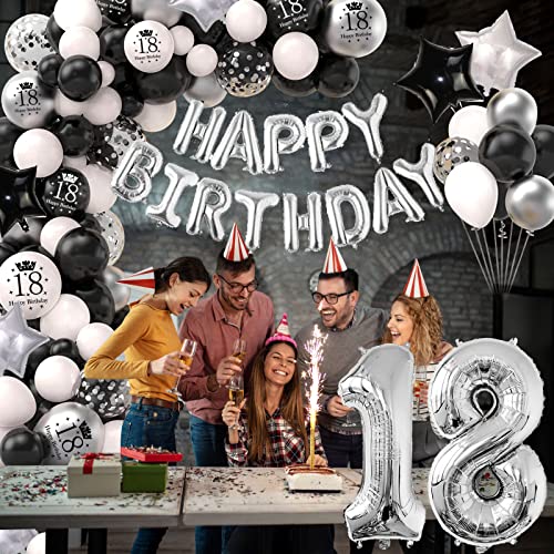 Palloncini 18 Anni Compleanno, 18 Anni Decorazioni Nero Argento Bianco, Compleanno 18 anni Addobbi con Banner Compleanno per Ragazzo Ragazza Adulti Compleanno Festa Decorazioni