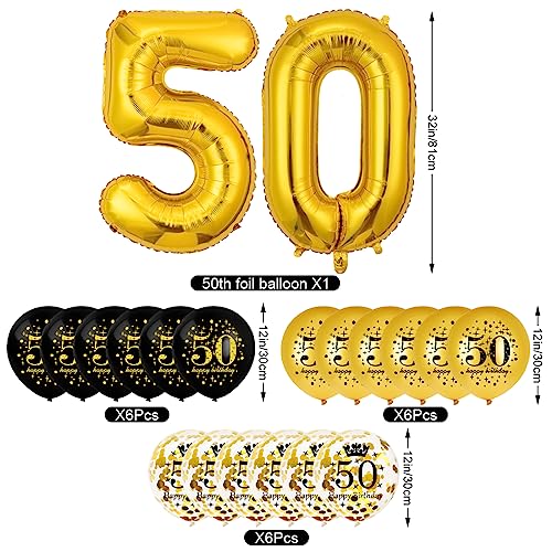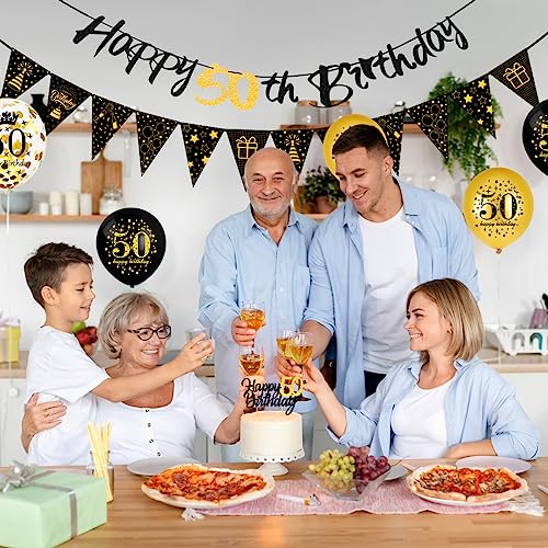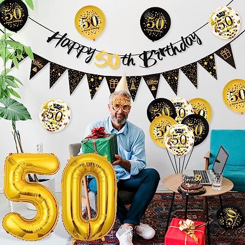 Palloncini 50 Anni Compleanno Nero Oro, Decorazioni 50 Anni Uomo Donna, Festone Buon Compleanno 50 anni, Compleanno 50 anni Addobbi Oro Nero per Uomo Donna Decorazioni Festa