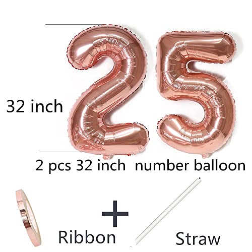 25 Anni compleanno decorazioni in oro rosa: 1 set di striscione di Happy Birthday, 2 palloncini in foil a forma di stella da 18 inch, 2 palloncini in foil a forma di corona da 18 inch, 2 palloncini in foil digitali da 32 inch, 6 palloncini a coriandoli da 12 inch in oro rosa, 6 palloncini in lattice da 12 inch in oro rosa di Happy Birthday, 4 palloncini in lattice da 12 inch in bianco di Happy Birthday, 4 palloncini metallici, 1 nastro, 1 set di decorazioni per torta di Happy Birthday.