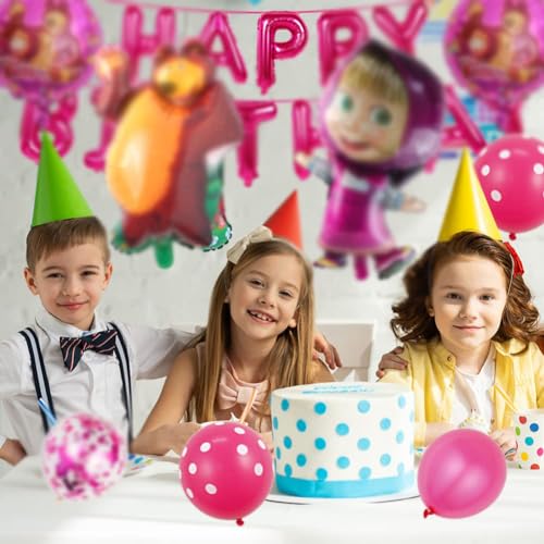【Il set include】Balloon Decoration Set include 1 grande pallone di lamina di orso, 1 palloncino di, 2 palloncini rotondi 18 pollici, 1 nodo di arco, 1 palloncino di lamina Buon Compleanno, 24 palloncini rosa 12 pollici, ecc È essenziale per qualsiasi festa interessante e colorata.