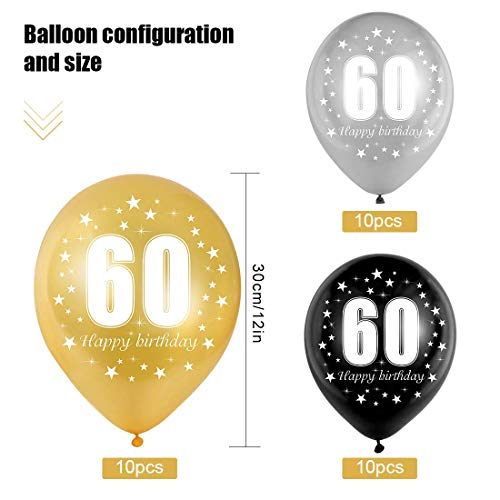 60 Palloncini Compleanno: il set di palloncini include 30 palloncini di buon compleanno (10 neri, 10 d'argento e 10 d'oro)