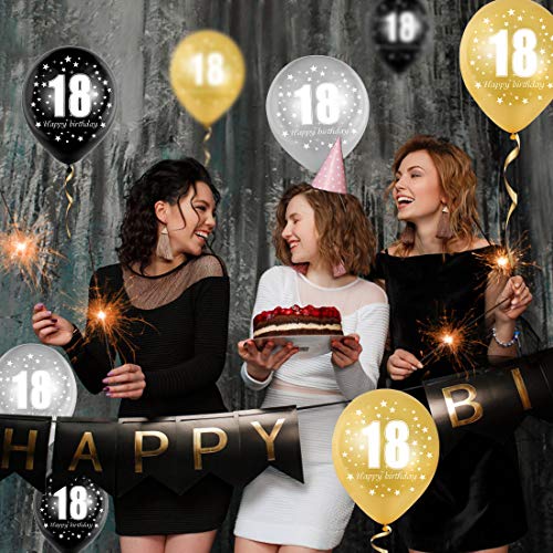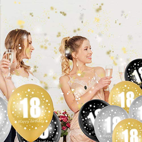 18 Palloncini Compleanno: il set di palloncini include 30 palloncini di buon compleanno (10 neri, 10 d'argento e 10 d'oro)