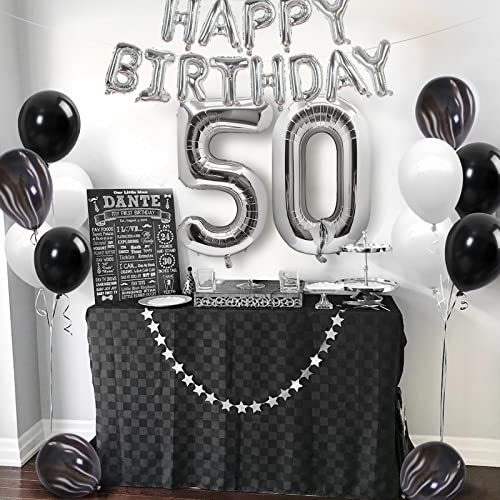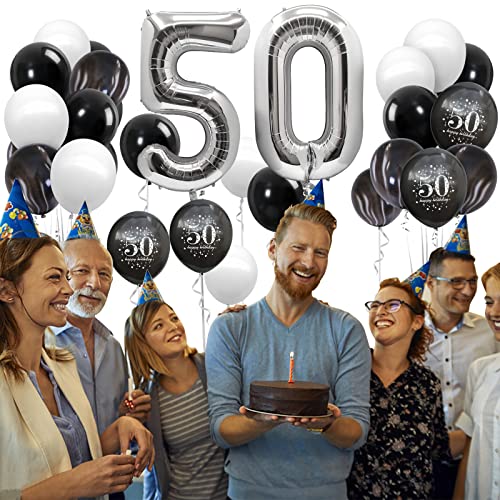 Palloncini 50 Anni Compleanno Uomo Ragazzo, Palloncini a Forma di Numero 50 Argento Palloncini per 50° Compleanno Palloncini Nero e Bianchi Argento Decorazione per Uomini