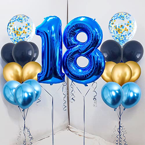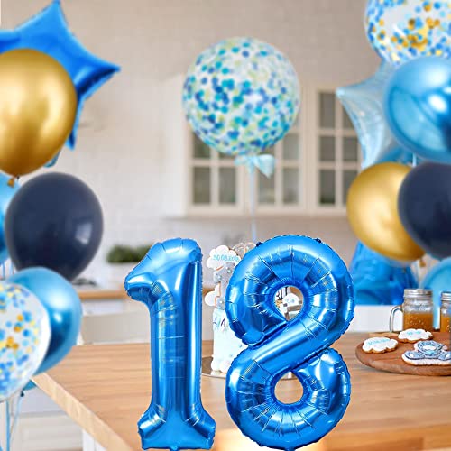 Palloncini Compleanno 18 Anno Blu, Ragazzo Palloncini Compleanno 18 Anno, 40 inch Giganti Palloncino Numero 18, Palloncini Blu, Enorme Palloncino di Coriandoli, Addobbi Compleanno Riutilizzabile