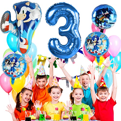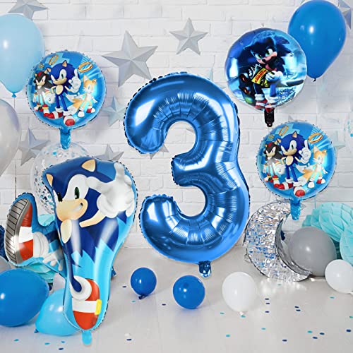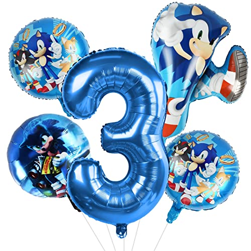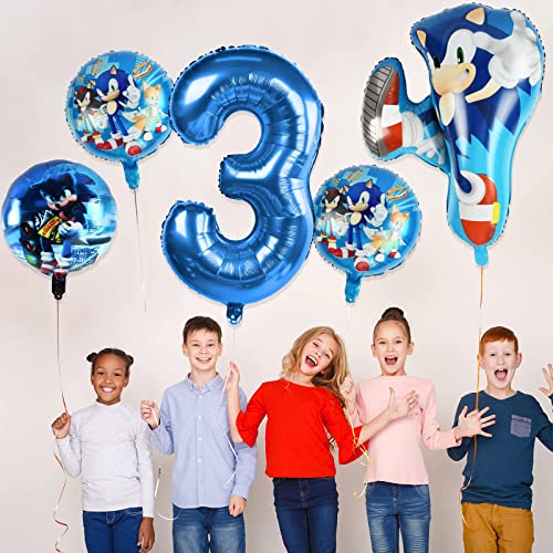 Palloncini Compleanno di Sonic, 5 pezzi Decorazione Festa Sonic, Palloncini Compleanno 3 Anno, Palloncini per Feste Palloncini di Alluminio Sonic per Decorazioni per Feste di Ragazzi e Ragazze