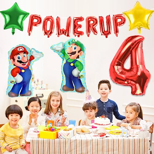 Kit Palloncini Compleanno, Palloncini Super Mario, Palloncini Compleanno 4 Anni, Palloncini di Alluminio, Decorazioni per Feste di Gioco, Palloncini per Bambini