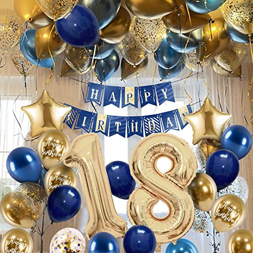 Palloncini 18 Anni Compleanno, Thinbal Decorazioni 18 anni Compleanno Ragazzo, Blu Oro Palloncini Compleanno 18 Anni con Striscione Compleanno per Decorazioni Festa 18 Compleanno Ragazzo Ragazza