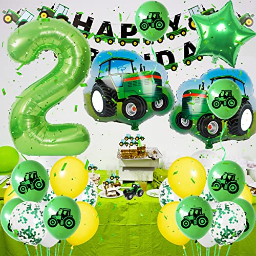 Palloncini Compleanno 2 Anni Trattore Set, Addobbi Compleanno Bambino 2 Anni Ragazzo, Decorazioni Compleanno 2 Anni, Happy Birthday Decorazioni Palloncino Numero 2 Trattore