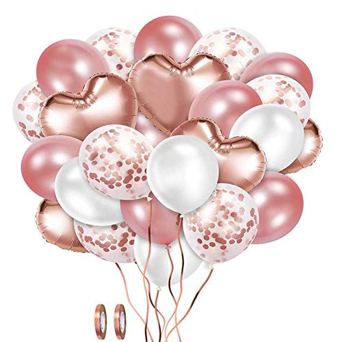 XYDZ Set di Palloncini Coriandoli Oro Rosa, 48 Pezzi Palloncini Coriandoli in Lattice Bianco Oro Rosa Palloncini Foil a Forma di Cuore Per Feste di Compleanno, Matrimoni, Decorazioni Per Festival