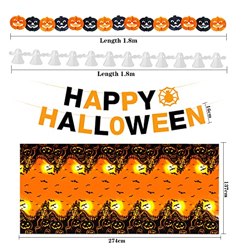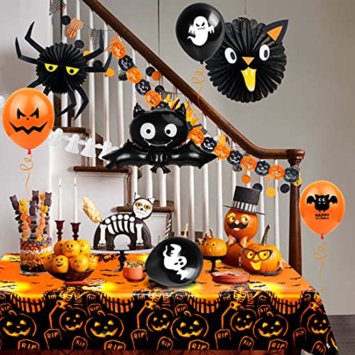 Palloncini Feste Halloween Set, Tovaglia di Halloween, Palloncino Foil Pipistrello, Happy Halloween Banner, Palloncini Arancioni Neri, Ghirlande di Zucche e Fantasma, Decorazioni Halloween Casa