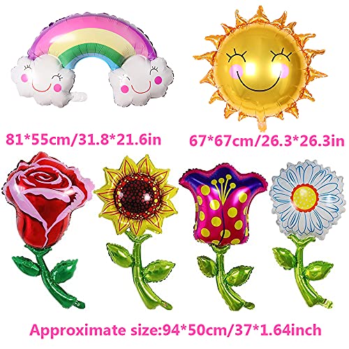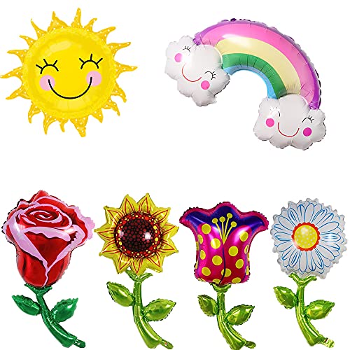 Palloncini foil a forma di fiore, Palloncino giocattolo ragazza, sole, arcobaleno, palloncino in alluminio, i palloncini sono molto luminosi e colorati,Decorazione per feste (6 palloncini grandi)
