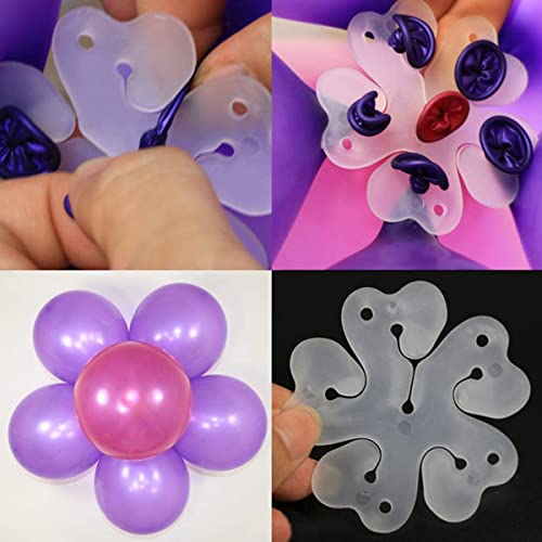 Design a forma di fiore: il foro interno della clip per palloncini è cavo, che può essere inserito direttamente nel supporto per palloncini, che è più comodo e stabile da usare. Ogni clip può contenere 5 palloncini, perfetti per la decorazione di palloncini.