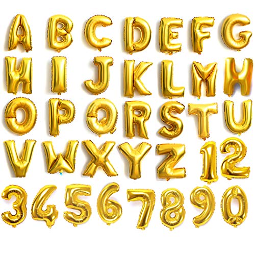 Palloncini a forma di lettere e numeri color oro e argento, da 40,6 cm, lettere dalla A alla Z e numeri da 0 a 9, per comporre nomi, da festa di nozze, in lamina, Gold, Letter A
