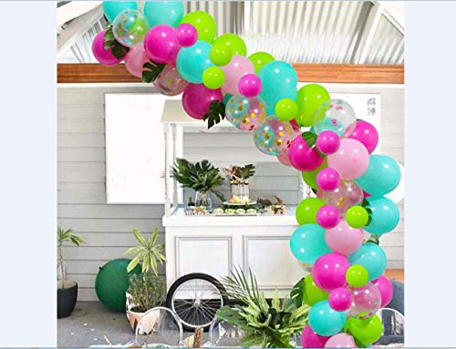 Palloncini Ghirlanda Kit 112 pezzi Palloncini Elio Rosa Caldo Blu Verde Arco Luau Decorazioni per Feste Party con Strumenti a Strisce Foglie di Palma per Compleanno Giungla Hawaii Summer Beach