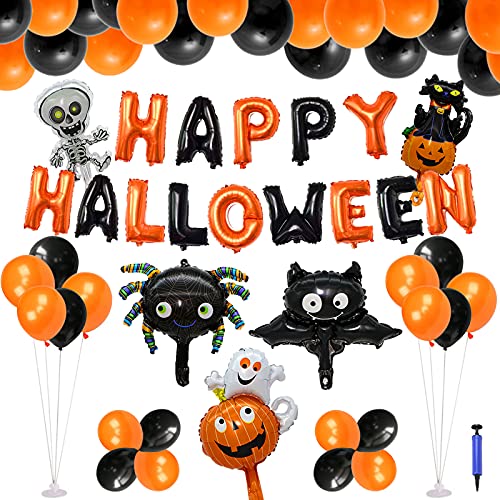 YLL Palloncini a Tema Halloween Set,40pcs Palloncini di Halloween Palloncini in Lattice da 12 Pollici,5pcs di Palloncini Stampo in Alluminio,1Set di Banner Happy Halloween,con Pompa ad Aria manualec