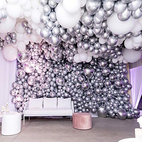 Contenuto della confezione: 30,5 cm, set di palloncini in lattice metallizzato, include 50 palloncini da festa di colore argento cromato metallizzato, quantità sufficiente per realizzare palloncini o ghirlande con altri palloncini colorati.