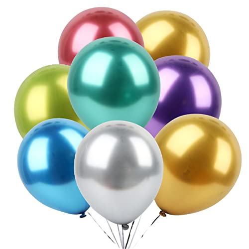Palloncini Lucidi Metallici Hillylolly 100 Pcs 12 Pollici Palloncini Cromati, Palloncini Colorati Metallizzati, Palloncino in Lattice per Compleanno Matrimoni Anniversari Battesimo Decorazioni Festa